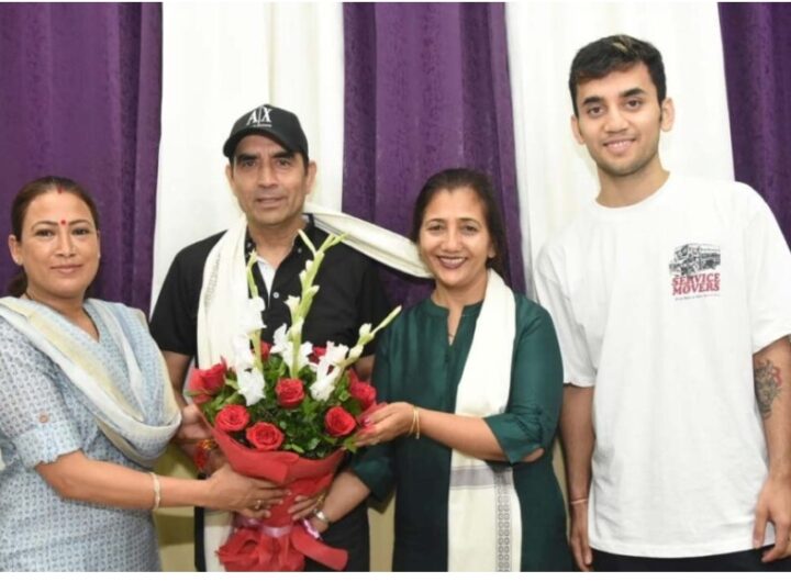 ओलंपियन बैडमिंटन खिलाड़ी लक्ष्य सेन ने अपने माता पिता के साथ खेल मंत्री रेखा आर्या से मुलाक़ात की।